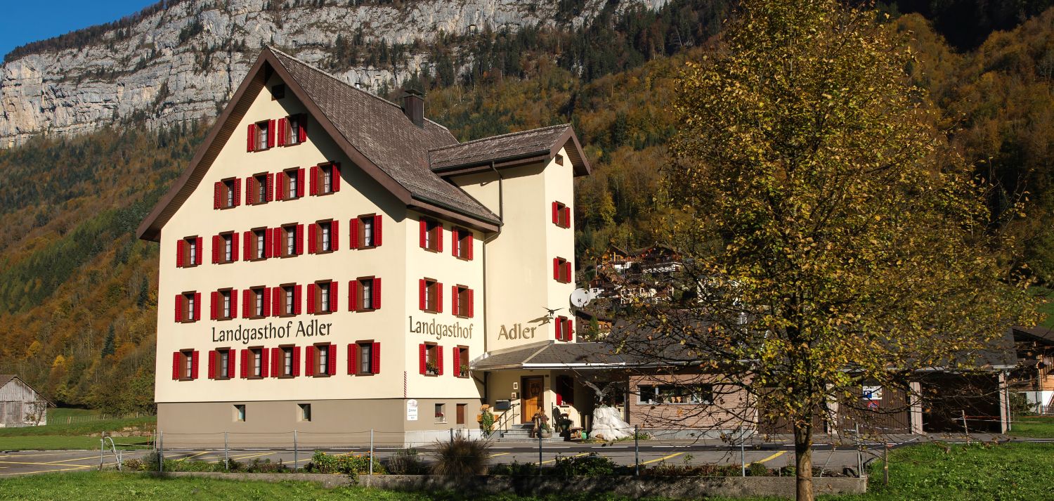 Landgasthof Adler, cette imposante auberge de campagne est magnifiquement située dans le paysage naturel alpin du petit hameau de Ried, directement sur la route principale menant à Muotathal. Dans cette maison de longue tradition, les propriétaires et hôtes Daniel et Paula Jann-Annen veillent au bien-être de leurs hôtes depuis 1995. Lui, avec sa fille Romana dans la cuisine au fourneau, elle avec sa fille Laura dans le restaurant. Et la fille Julia s’occupe du marketing. Vous avez le choix entre trois salles joliment lambrissées, qui dégagent une ambiance chaleureuse. Les meilleurs produits de la région y sont servis. Les classiques populaires, non seulement pour les nombreux habitués, sont la truite de rivière Muota ou le Milchgitzi (cabri) sorti du four. En automne, les hôtes y font un pèlerinage jusqu’à Landgasthof Adler pour y déguster des plats de gibier classiques, et là aussi, on préfère le gibier de la chasse locale.